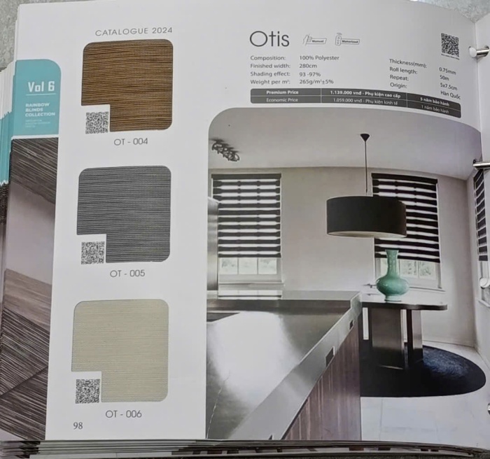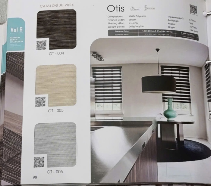 Thông số kỹ thuật rèm cầu vồng Padora Otis