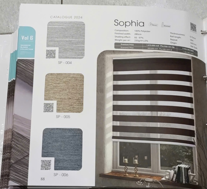 Thông số kỹ thuật rèm cầu vồng Padora Sophia