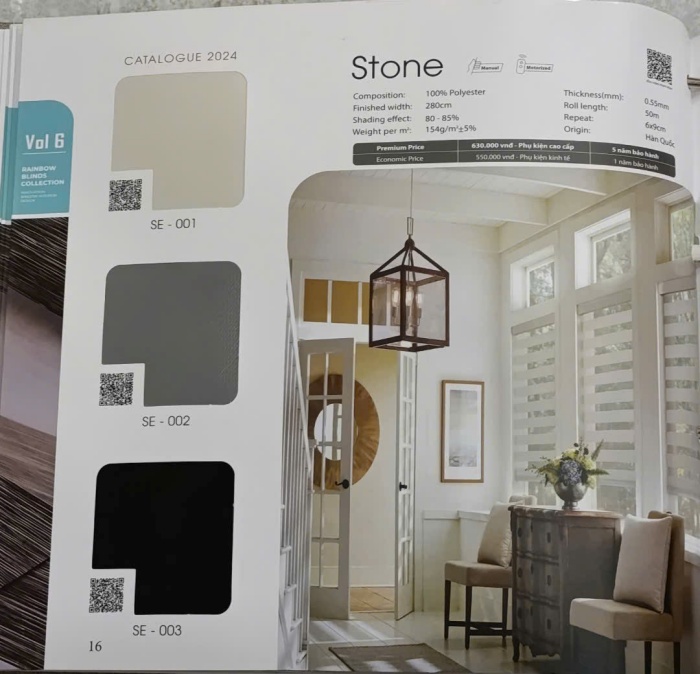 Thông số kỹ thuật rèm cầu vồng Padora Stone